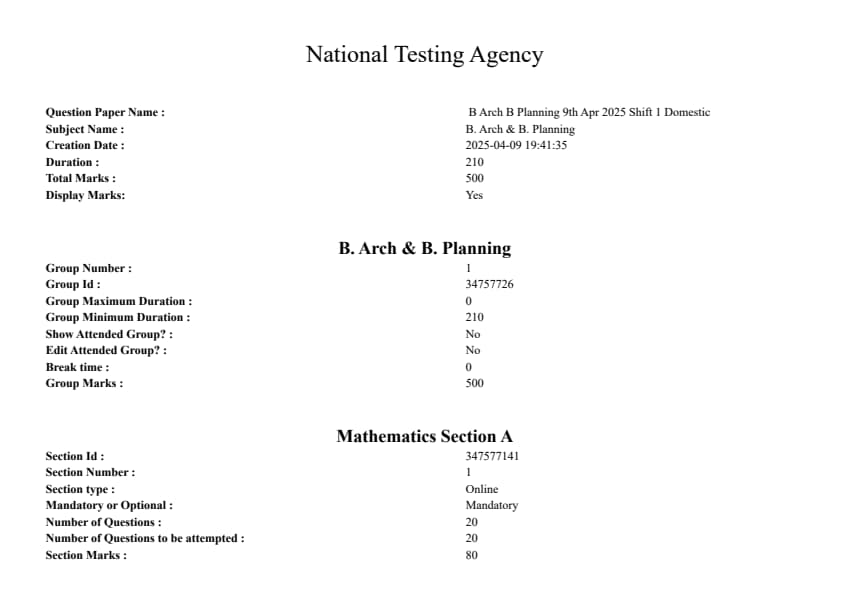 | JEE Main 2025 B. Arch & B. Planning April 9 Question Paper Pdf | Download PDF | View Solution |