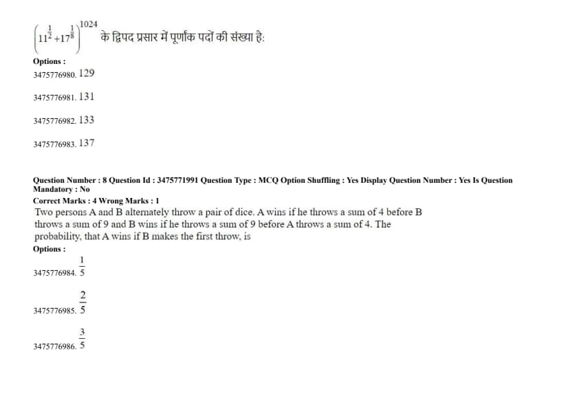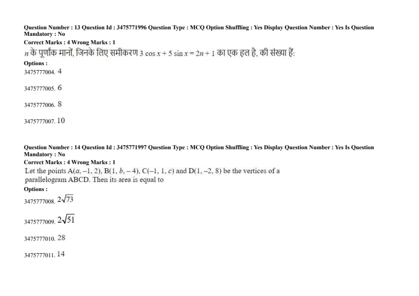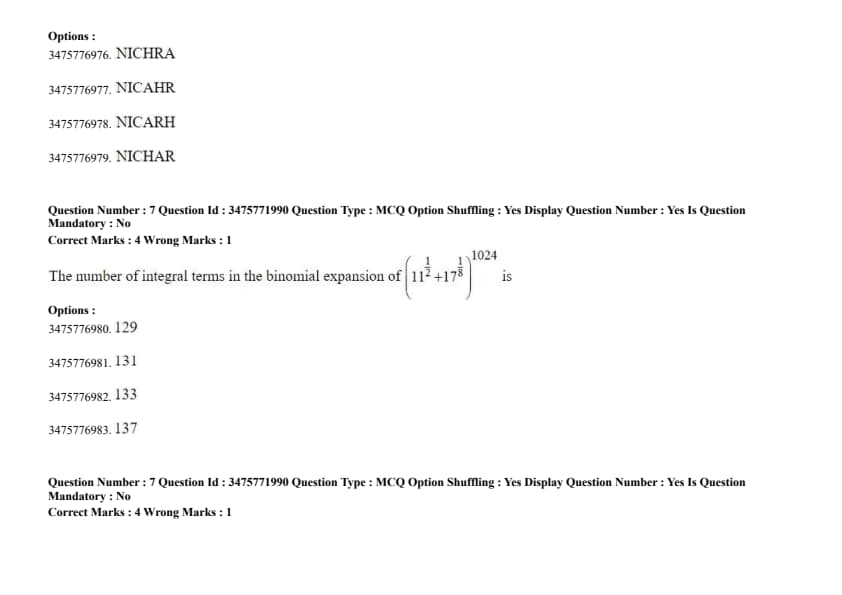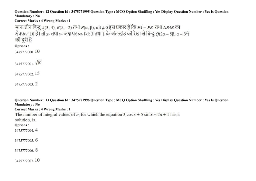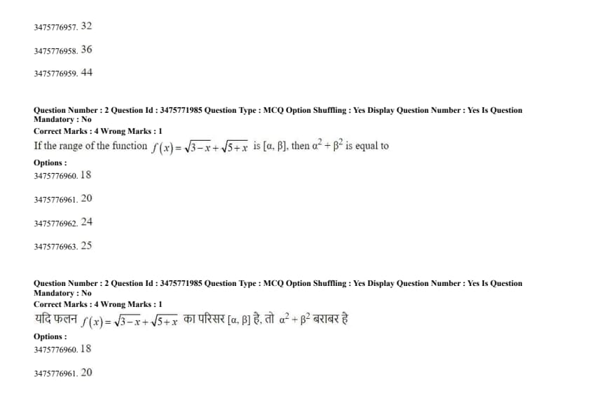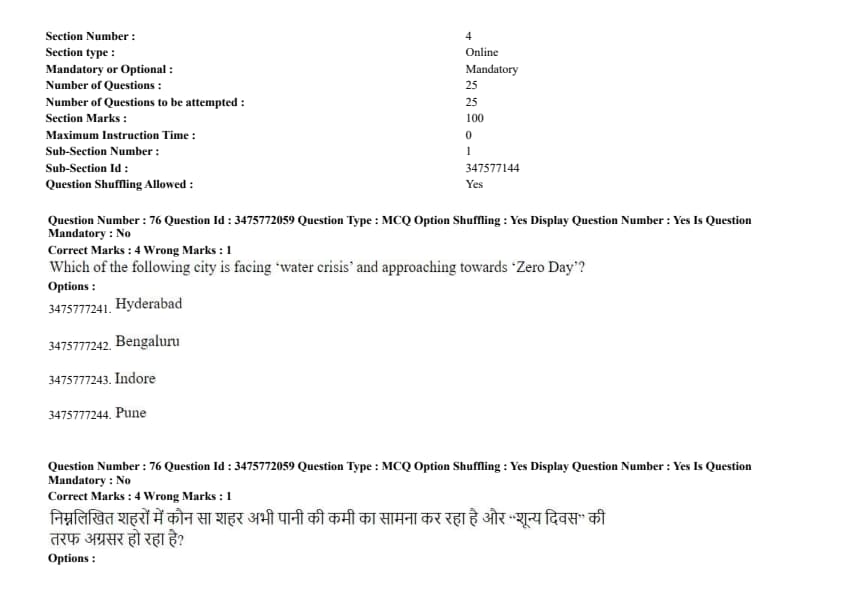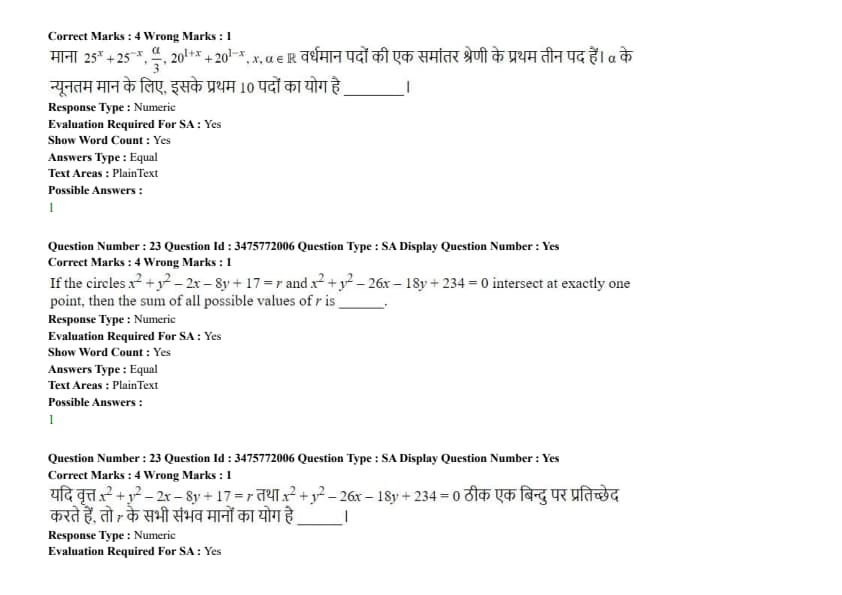 | Subject | Session 1 (January 30, 2025) | Session 2 (April 9, 2025) | Total Questions |