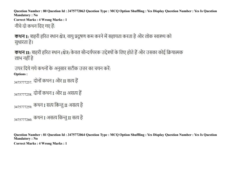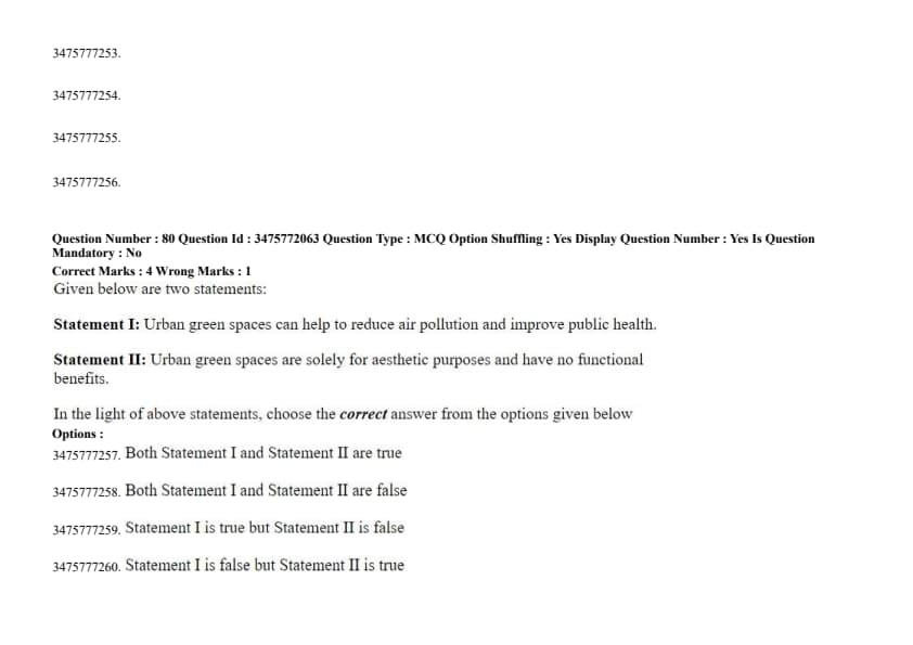 Statement II: Urban green spaces are solely for aesthetic purposes and have no functional benefits.