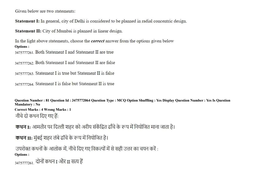 Statement I: In general, city of Delhi is considered to be planned in radial concentric design.