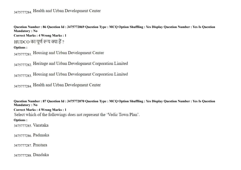 Select which of the followings does not represent the ‘Vedic Town Plan’.