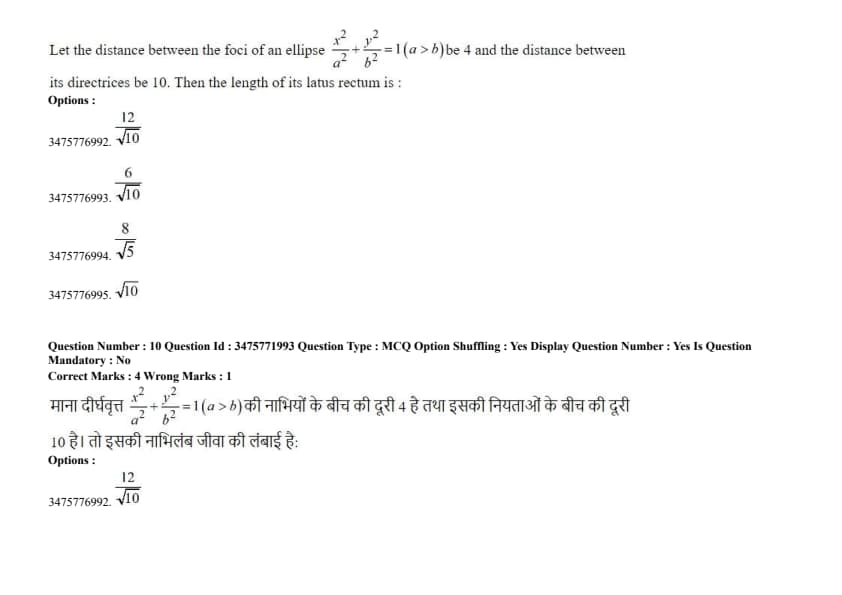 be \(4\) and the distance between its directrices be \(10\). Then the length of its latus rectum is: