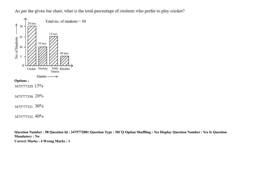 As per the given bar chart, what is the total percentage of students who prefer to play cricket?