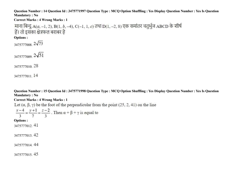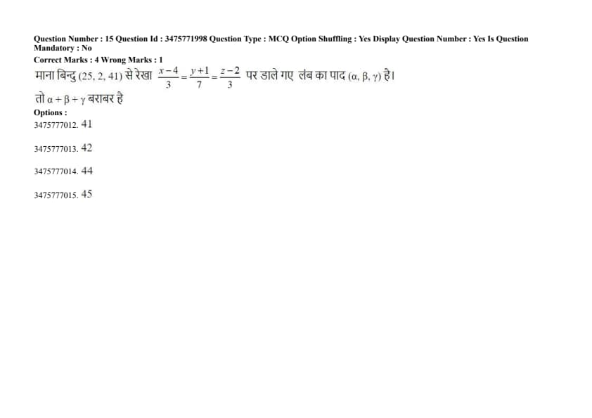 Let \((\alpha,\beta,\gamma)\) be the foot of the perpendicular from the point \((25,2,41)\) on the line \[ \frac{x-4}{3}=\frac{y+1}{7}=\frac{z-2}{3}. \]
