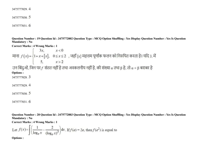 Let \[ f(x)=\int\left(\frac{1}{\log_e x}-\frac{2}{(\log_e x)^3}\right)\,dx. \]