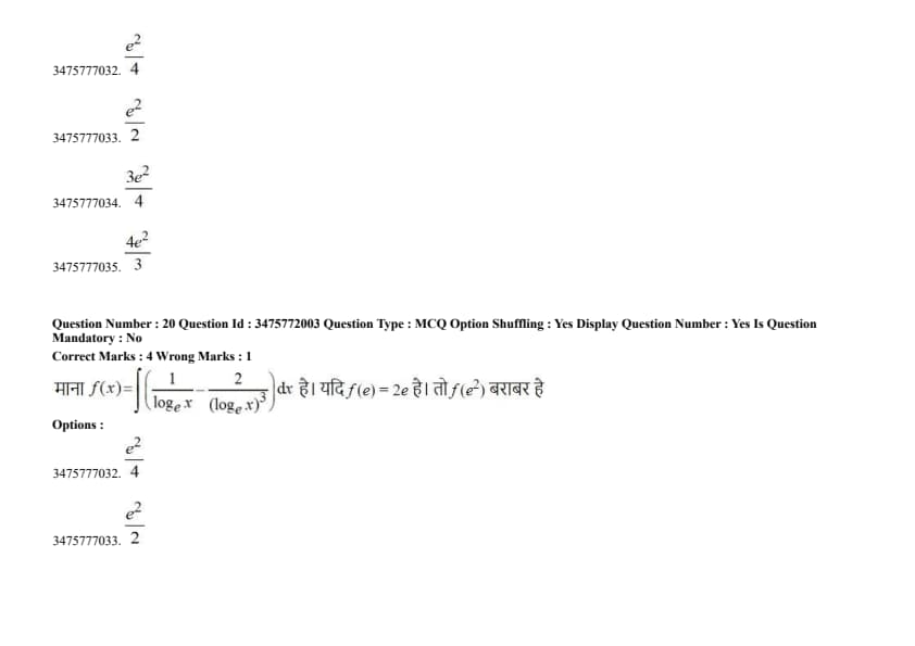 If \(f(e)=2e\), then \(f(e^2)\) is equal to: