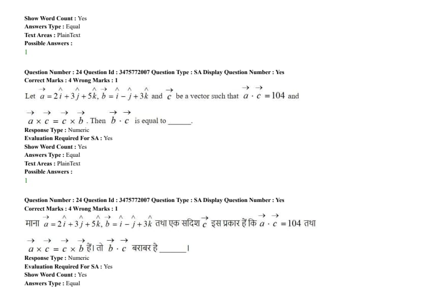 Let \(\vec a = 2\hat i + 3\hat j + 5\hat k\), \(\vec b = \hat i - \hat j + 3\hat k\) and \(\vec c\) be a vector such that \[ \vec a \cdot \vec c = 104 \quad and \quad \vec a \times \vec c = \vec c \times \vec b. \]