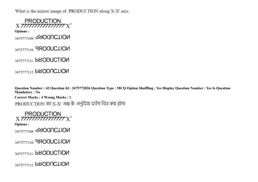 What is the mirror image of the word \textbf{PRODUCTION} along the \(X\!-\!X'\) axis?