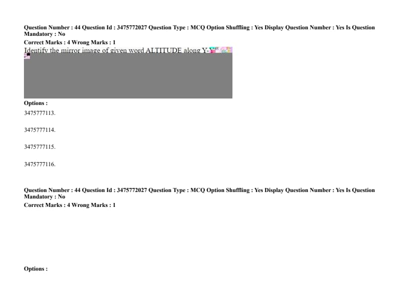 Identify the mirror image of the given word \textbf{ALTITUDE} along the \(Y\!-\!Y'\) axis.