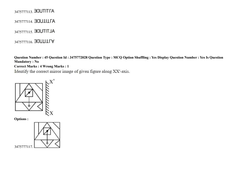 Identify the correct mirror image of the given figure along the \(X\!-\!X'\) axis.