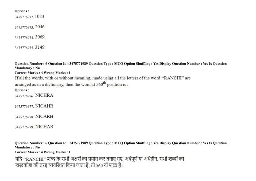 If all the words, with or without meaning, made using all the letters of the word ``RANCHI'' are arranged as in a dictionary, then the word at \(560^{th}\) position is: