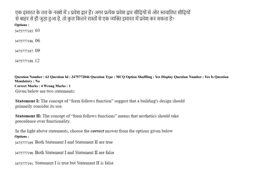 Statement II: The concept of “form follows function” means that aesthetics should take precedence over functionality.