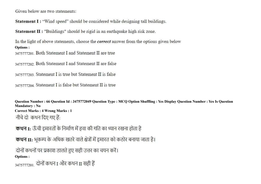 Statement II: “Buildings” should be rigid in an earthquake high risk zone.