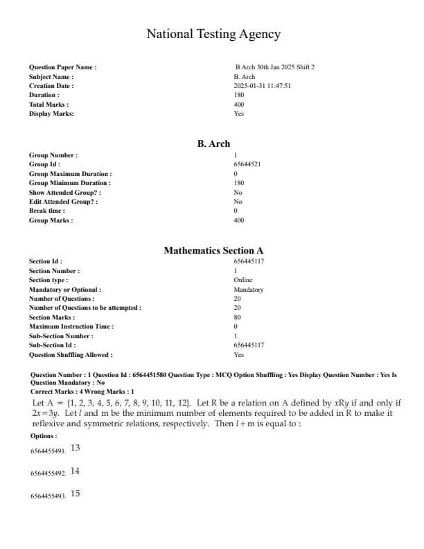 - JEE Main 30 Jan 2025 B.Arch Question Paper with Solutions