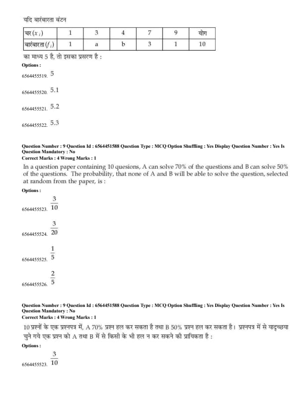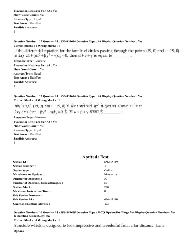 | Aptitude | Moderate | Easy | 50 |