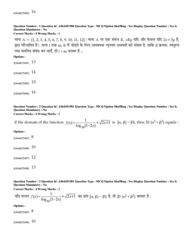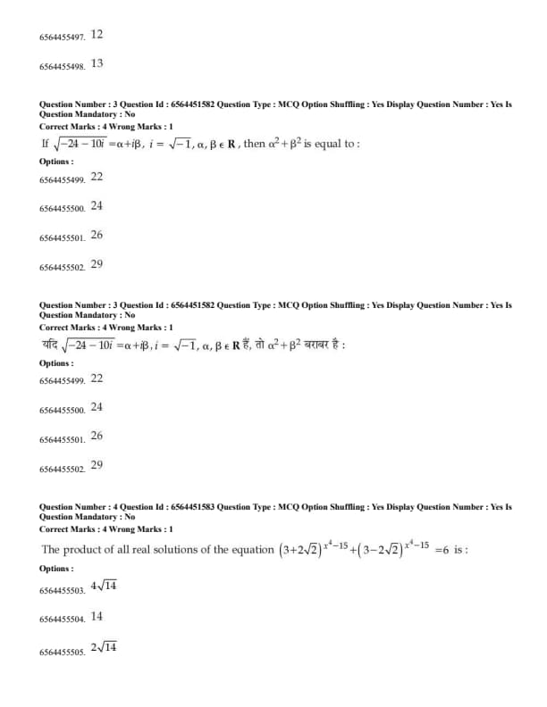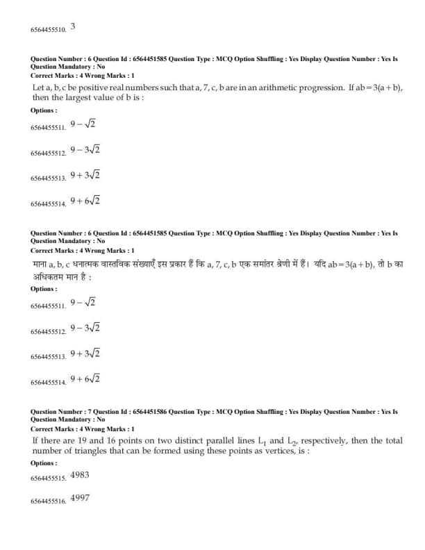 | Subject | Session 1 (January 30, 2025) | Session 2 (April 9, 2025) | Total Questions |