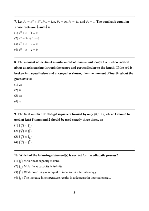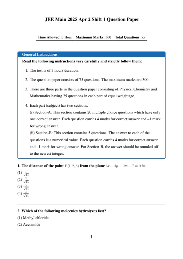 | Paper 1 | Physics, Chemistry, Mathematics | 75 Questions (25 Physics, 25 Chemistry, 25 Mathematics) | 300 total |
