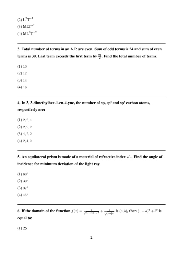 | Paper 1 | Physics, Chemistry, Mathematics | 75 Questions (25 Physics, 25 Chemistry, 25 Mathematics) | 300 total |