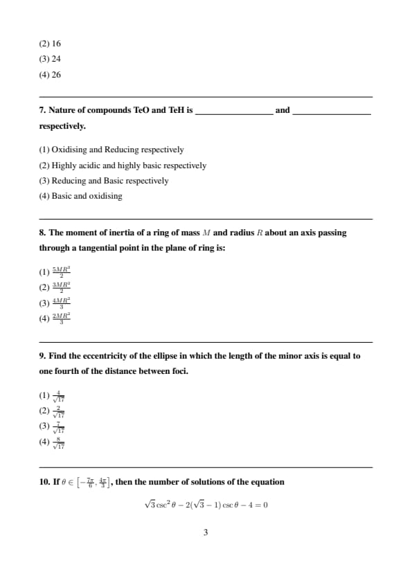 - The answer to the numerical value Question shall be rounded off to the nearest value.