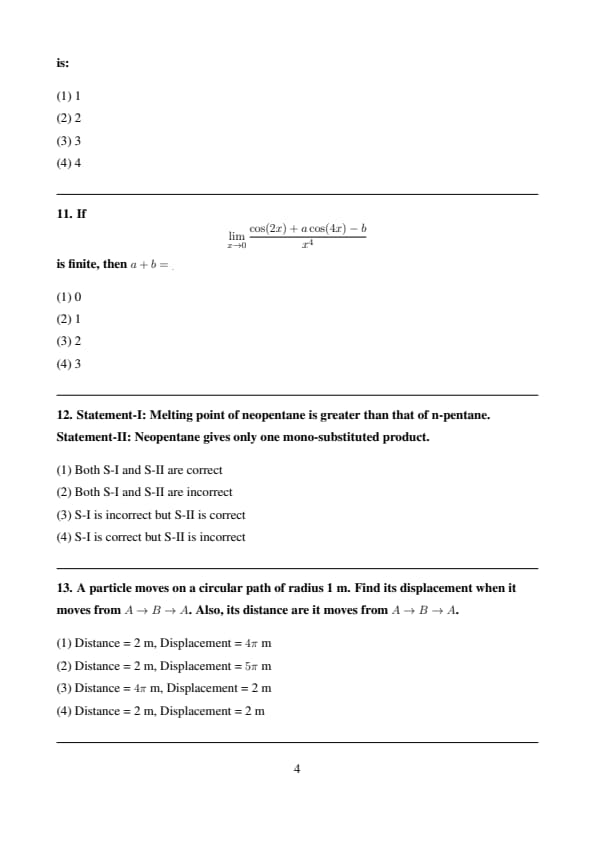 - If more than one Question is incorrect, then +4 marks are awarded to all those students who mark any of the two correct answers.