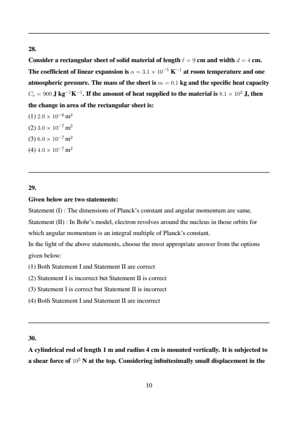 Statement (II) : In Bohr’s model, electron revolves around the nucleus in those orbits for which angular momentum is an integral multiple of Planck’s constant.