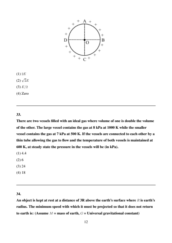 A metallic ring is uniformly charged as shown in the figure. AC and BD are two mutually perpendicular diameters. Electric field due to arc AB to O is ‘E’ magnitude. What would be the magnitude of electric field at ‘O’ due to arc ABC?