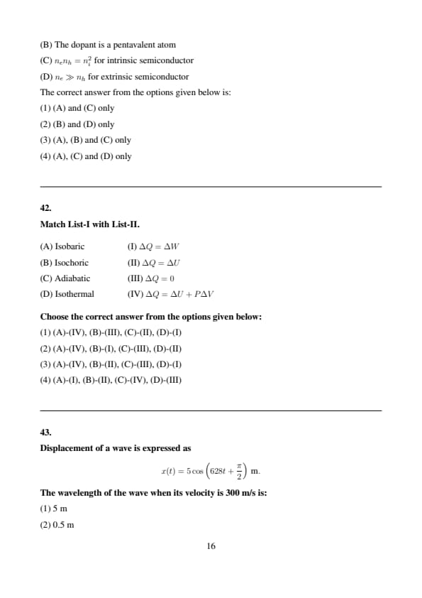 Consider a n-type semiconductor in which \( n_e \) and \( n_h \) are the number of electrons and holes, respectively.