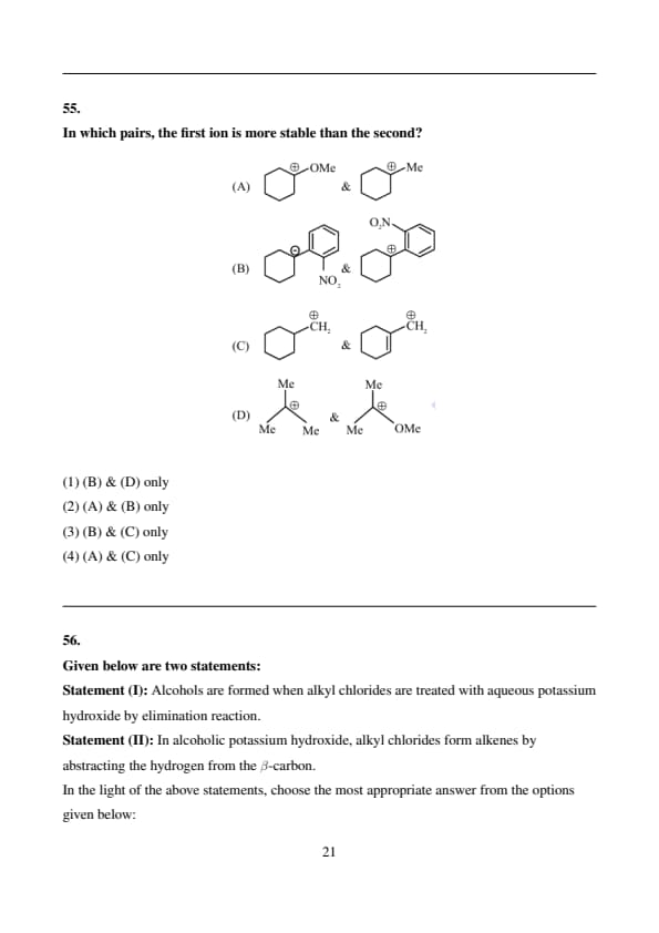 Statement (II): In alcoholic potassium hydroxide, alkyl chlorides form alkenes by abstracting the hydrogen from the \( \beta \)-carbon.