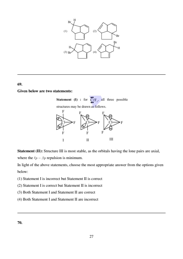 Statement (II): Structure III is most stable, as the orbitals having the lone pairs are axial, where the \( \ell p - \beta p \) repulsion is minimum.