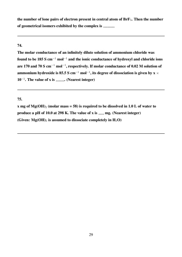 x mg of Mg(OH)\(_2\) (molar mass = 58) is required to be dissolved in 1.0 L of water to produce a pH of 10.0 at 298 K. The value of x is ____ mg. (Nearest integer)