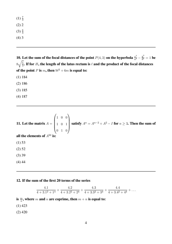 The Memory-Based Question Paper for JEE Main April 4 Shift 2 for B.E/B. Tech Paper is available for download. You can find JEE Main April 4 Shift 2 Answer key here.
