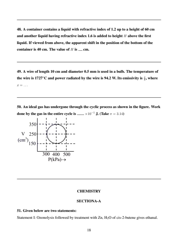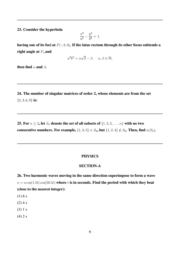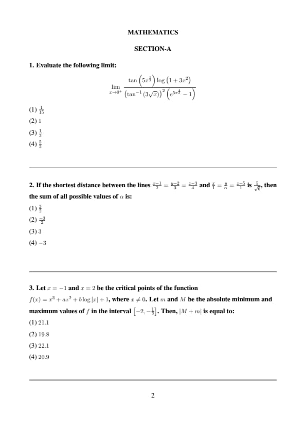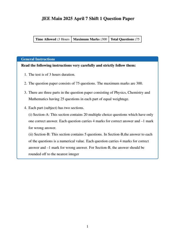 | Paper 1 | Physics, Chemistry, Mathematics | 75 Questions (25 Physics, 25 Chemistry, 25 Mathematics) | 300 total |
