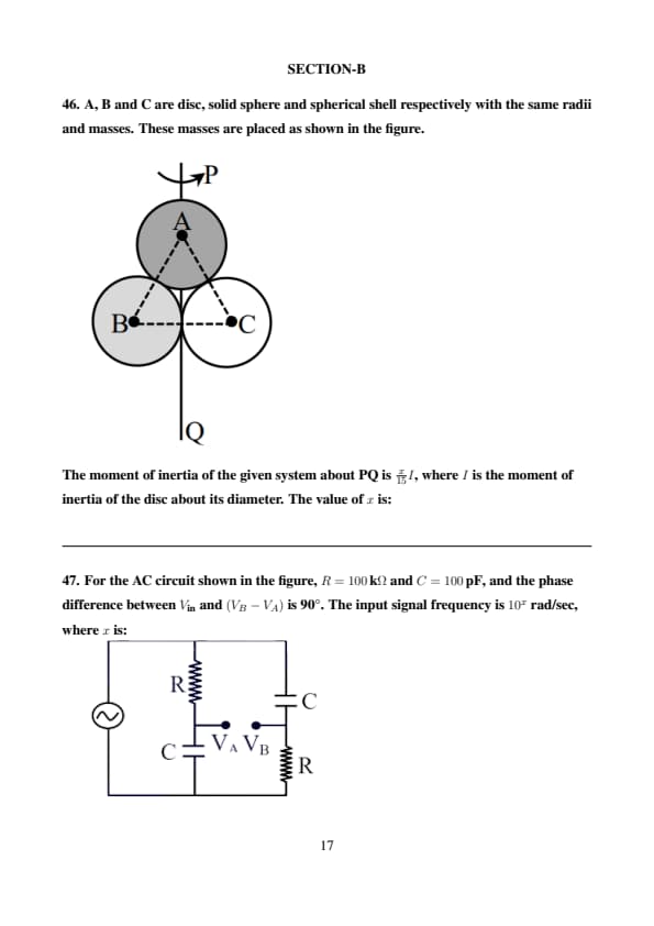 The moment of inertia of the given system about PQ is \( \frac{x}{15} I \), where \( I \) is the moment of inertia of the disc about its diameter. The value of \( x \) is: