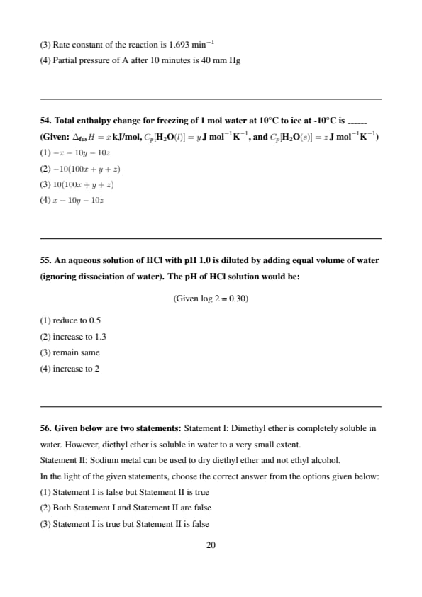 (Given: \( \Delta_{fus}H = x \, kJ/mol \), \( C_p[H_2O(l)] = y \, J mol^{-1} K^{-1} \), and \( C_p[H_2O(s)] = z \, J mol^{-1} K^{-1} \))