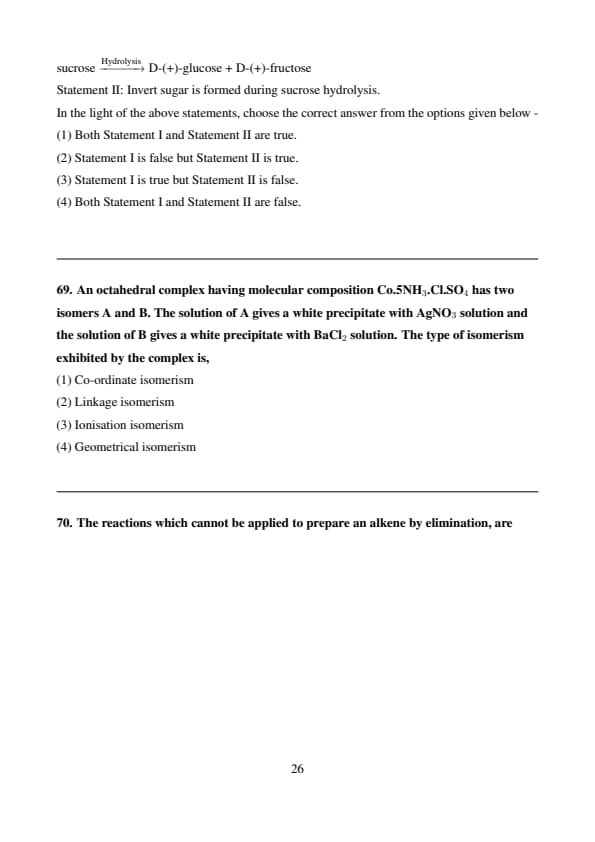Statement II: Invert sugar is formed during sucrose hydrolysis.