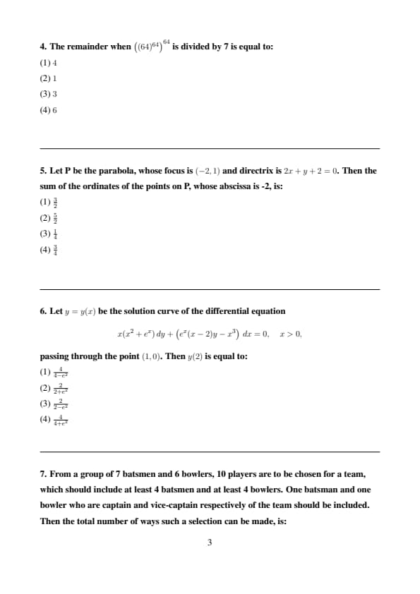 The remainder when \( \left( (64)^{64} \right)^{64} \) is divided by 7 is equal to: