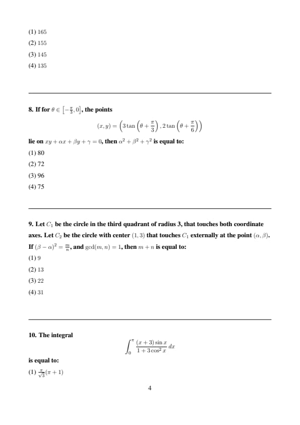 Let \( C_1 \) be the circle in the third quadrant of radius 3, that touches both coordinate axes. Let \( C_2 \) be the circle with center \( (1, 3) \) that touches \( C_1 \) externally at the point \( (\alpha, \beta) \). If \( (\beta - \alpha)^2 = \frac{m}{n} \), and \( \gcd(m, n) = 1 \), then \( m + n \) is equal to: