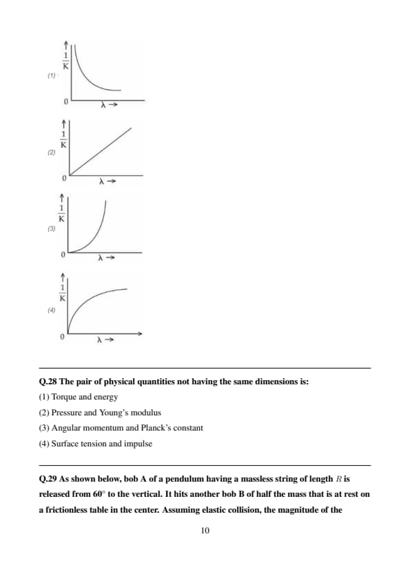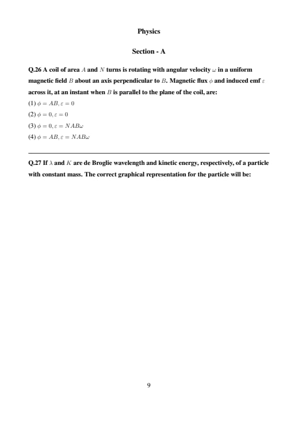 If \( \lambda \) and \( K \) are de Broglie wavelength and kinetic energy, respectively, of a particle with constant mass. The correct graphical representation for the particle will be: