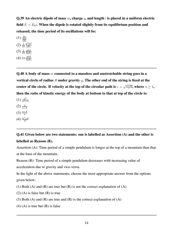 Given below are two statements: one is labelled as Assertion (A) and the other is labelled as Reason (R). Assertion (A): Time period of a simple pendulum is longer at the top of a mountain than that at the base of the mountain. Reason (R): Time period of a simple pendulum decreases with increasing value of acceleration due to gravity and vice-versa. In the light of the above statements, choose the most appropriate answer from the options given below: