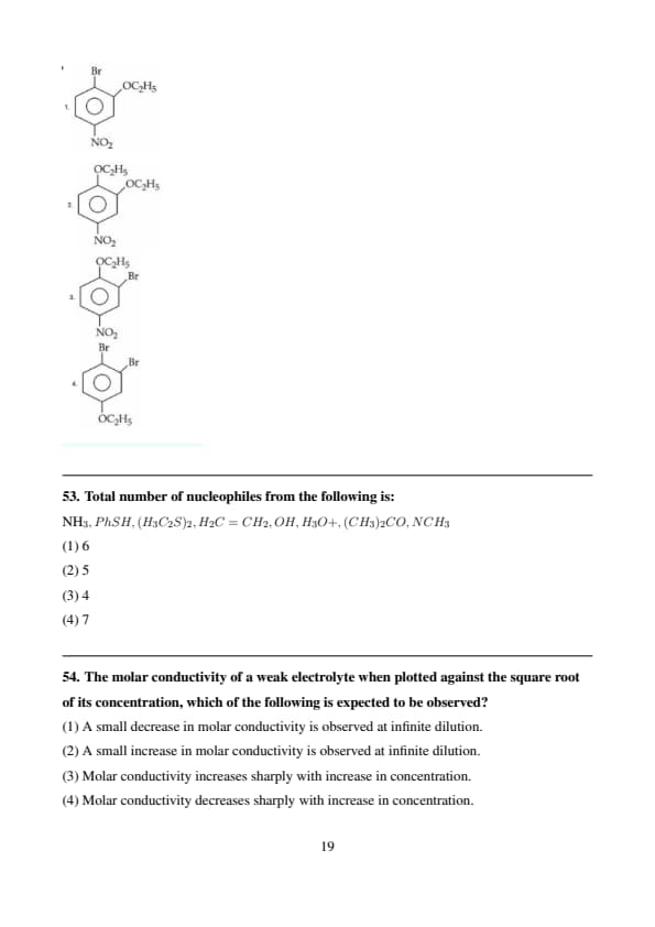 Total number of nucleophiles from the following is: \[ \text{NH}_3, \text{PhSH}, \text{(H}_3\text{C}_2\text{S})_2, \text{H}_2\text{C}= \text{C}\text{H}_2, \, \text{OH}^-, \, \text{H}_3\text{O}^+, \, (\text{CH}_3)_2 \text{CO}, \, \text{NCH}_3 \]