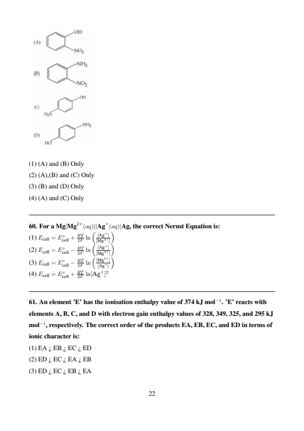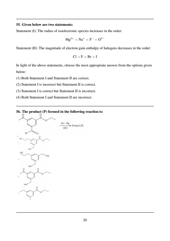 Given below are two statements: Statement (I): The radius of isoelectronic species increases in the order. \[ \text{Mg}^{2+} < \text{Na}^+ < \text{F}^- < \text{O}^{2-} \] Statement (II): The magnitude of electron gain enthalpy of halogens decreases in the order. \[ \text{Cl} > \text{F} > \text{Br} > \text{I} \] In light of the above statements, choose the most appropriate answer from the options given below: