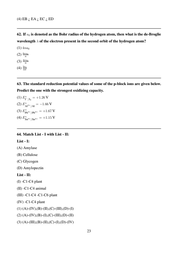 Match List - I with List - II: List - I: (A) Amylase