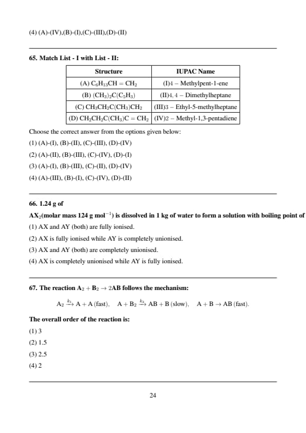 Match List - I with List - II: List - I: \[ \begin{array}{|c|c|} \hline \textbf{Structure} & \textbf{IUPAC Name}