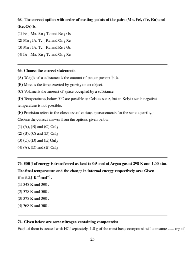 The correct option with order of melting points of the pairs (Mn, Fe), (Tc, Ru) and (Re, Os) is: