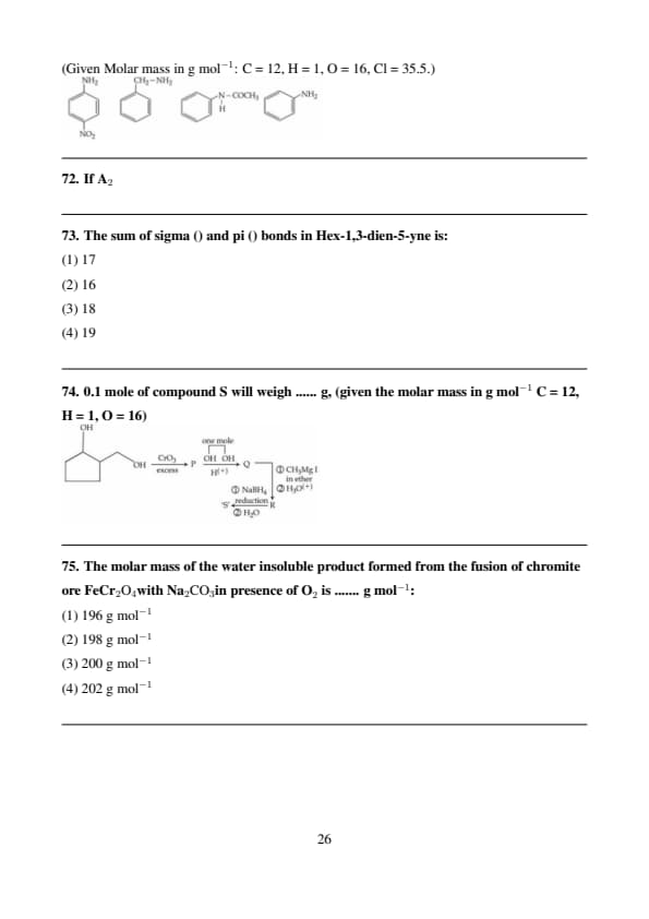 The molar mass of the water insoluble product formed from the fusion of chromite ore \( \text{FeCr}_2\text{O}_4 \) with \( \text{Na}_2\text{CO}_3 \) in presence of \( \text{O}_2 \) is ....... g mol\(^{-1}\).