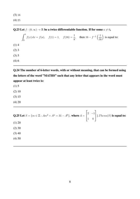 - The Mathematics section in JEE Main 2025 29 Jan Shift 1 Question Paper was Tough with 9 questions coming majorly from topics like Integration, Probability, etc.