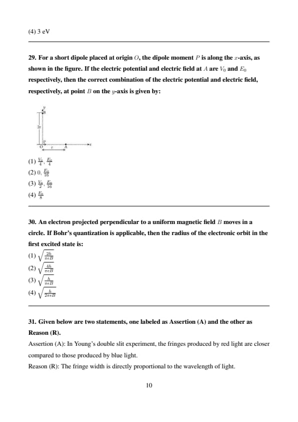 An electron projected perpendicular to a uniform magnetic field \( B \) moves in a circle. If Bohr’s quantization is applicable, then the radius of the electronic orbit in the first excited state is: