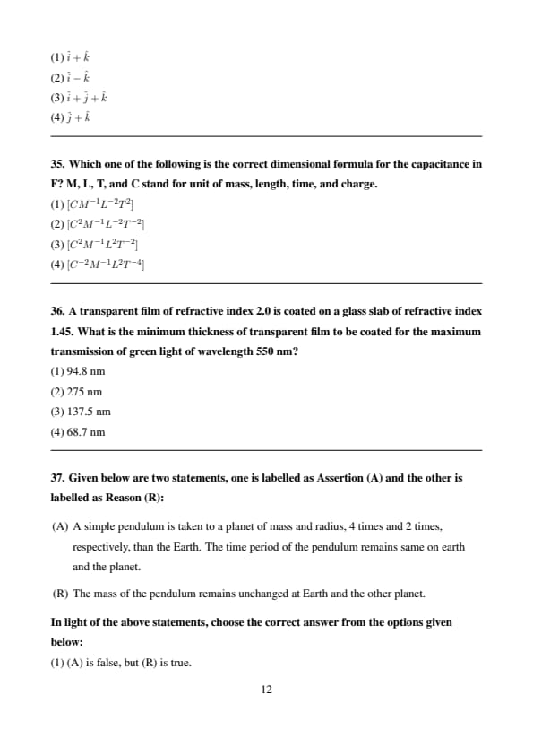 Given below are two statements, one is labelled as Assertion (A) and the other is labelled as Reason (R): [(A)] A simple pendulum is taken to a planet of mass and radius, 4 times and 2 times, respectively, than the Earth. The time period of the pendulum remains same on earth and the planet. [(R)] The mass of the pendulum remains unchanged at Earth and the other planet. In light of the above statements, choose the correct answer from the options given below: