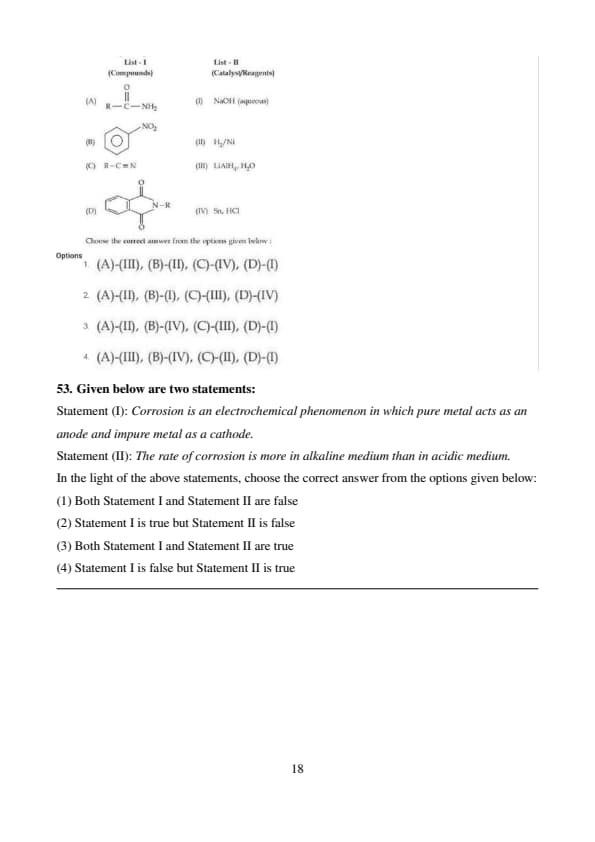 Statement (II): \textit{The rate of corrosion is more in alkaline medium than in acidic medium. In the light of the above statements, choose the correct answer from the options given below: