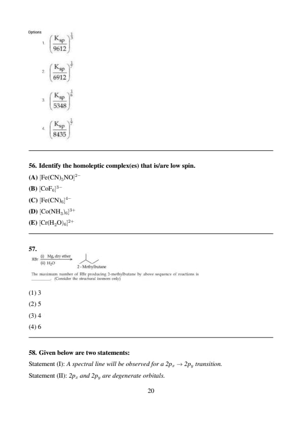 Given below are two statements: Statement (I): \textit{A spectral line will be observed for a 2p\(_x\) \(\rightarrow\) 2p\(_y\) transition.